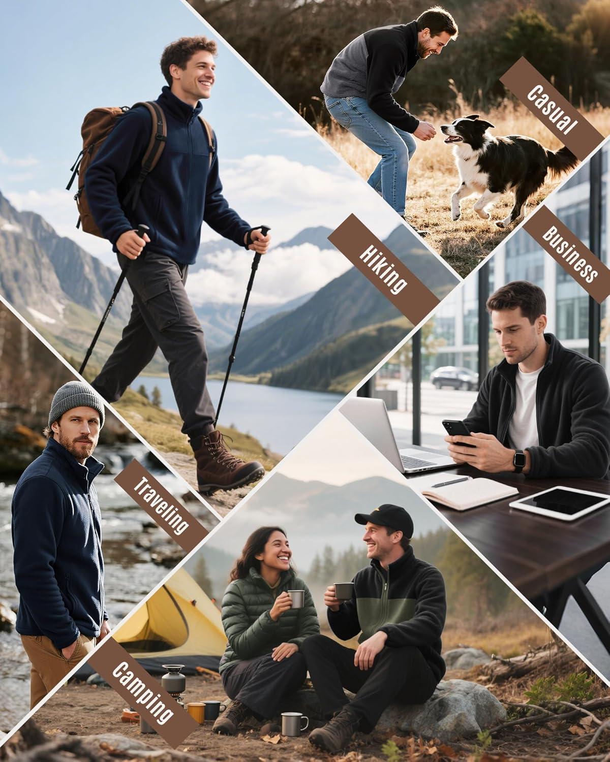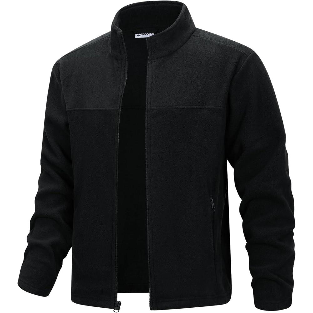 33,000ft Men's Full Zip Fleece Jacket Lightweight Warm Soft Polar Fleece Winter Jacket with Pockets for Casual Hiking Outdoor(Black)