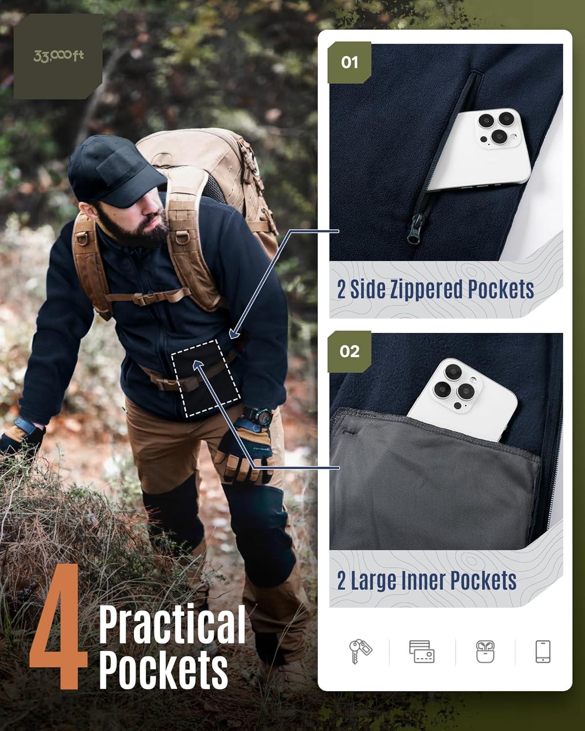 33,000ft Men’s Full Zip Fleece Jacket Lightweight Warm Soft Polar Fleece Winter Jacket with Pockets for Casual Hiking Outdoor(Black)