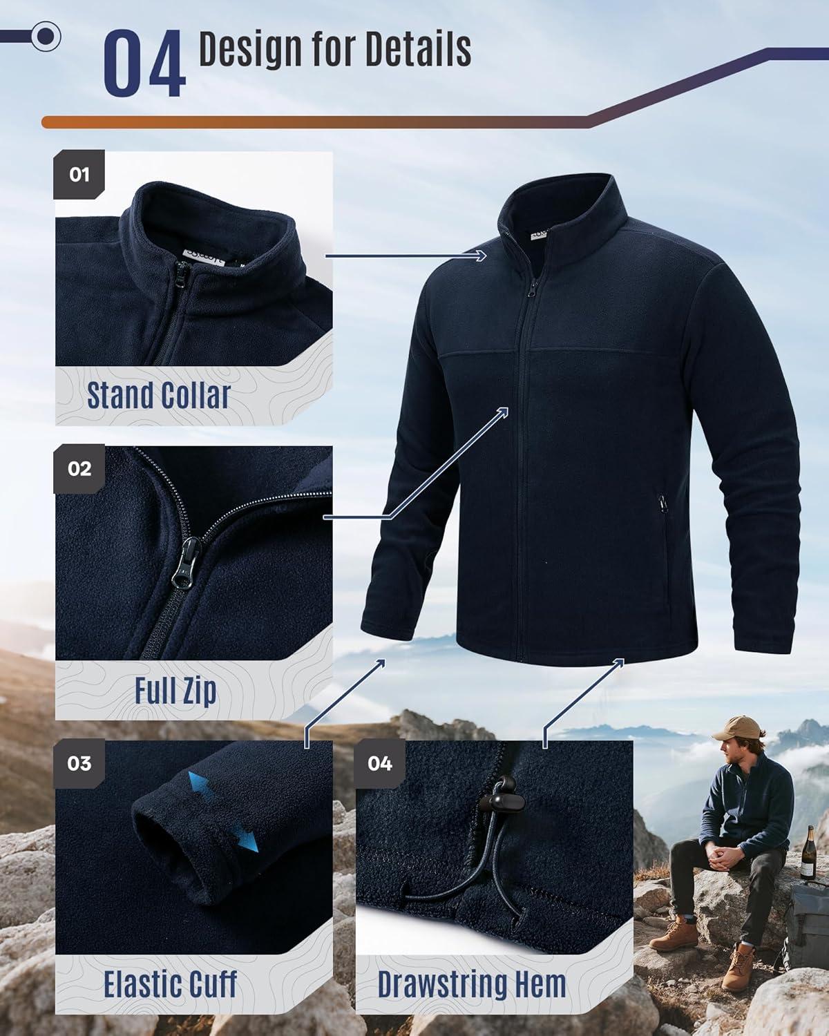 image33000ft Mens Full Zip Fleece Jacket Lightweight Warm Soft Polar Fleece Winter Jacket with Pockets for Casual Hiking OutdoorBlue